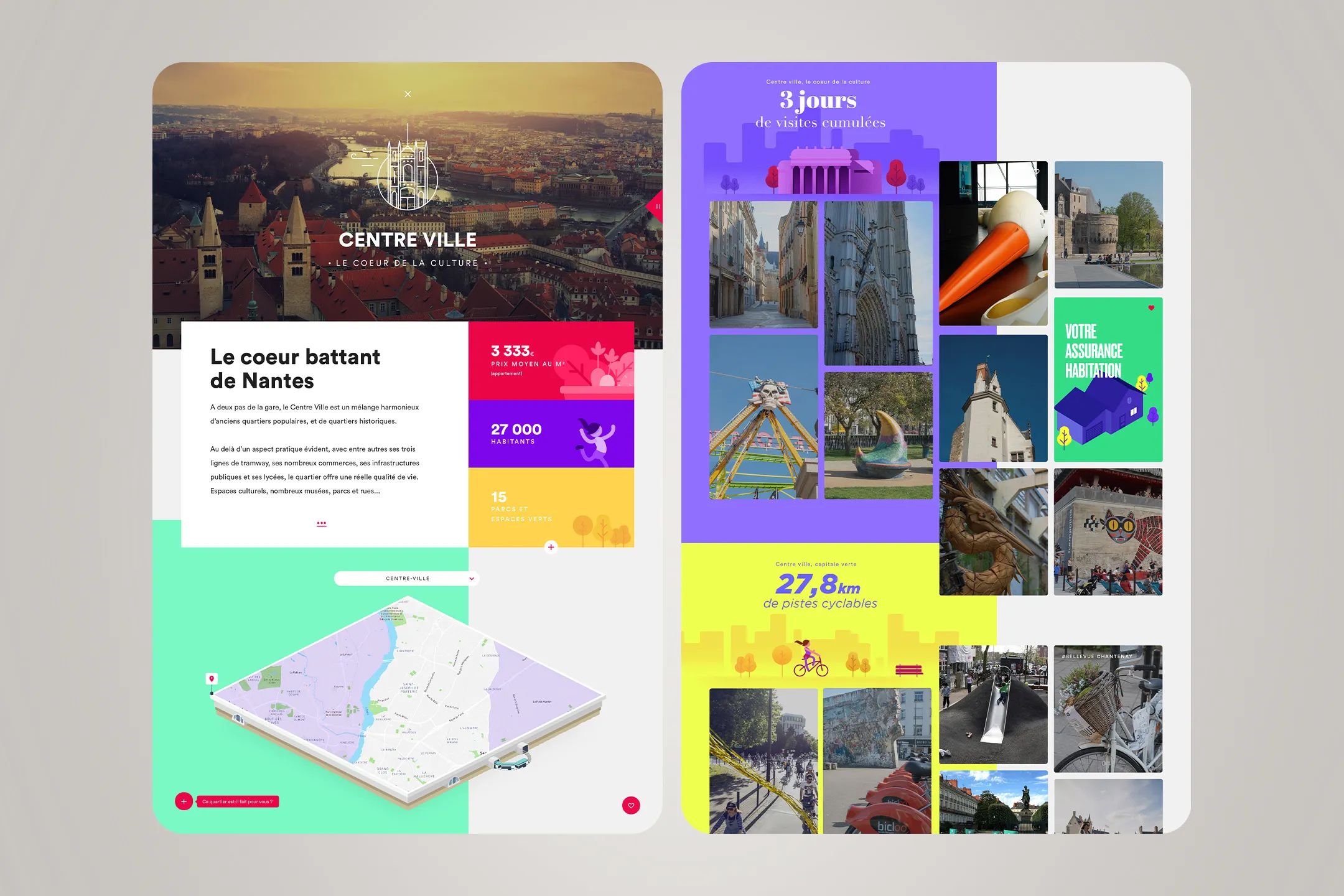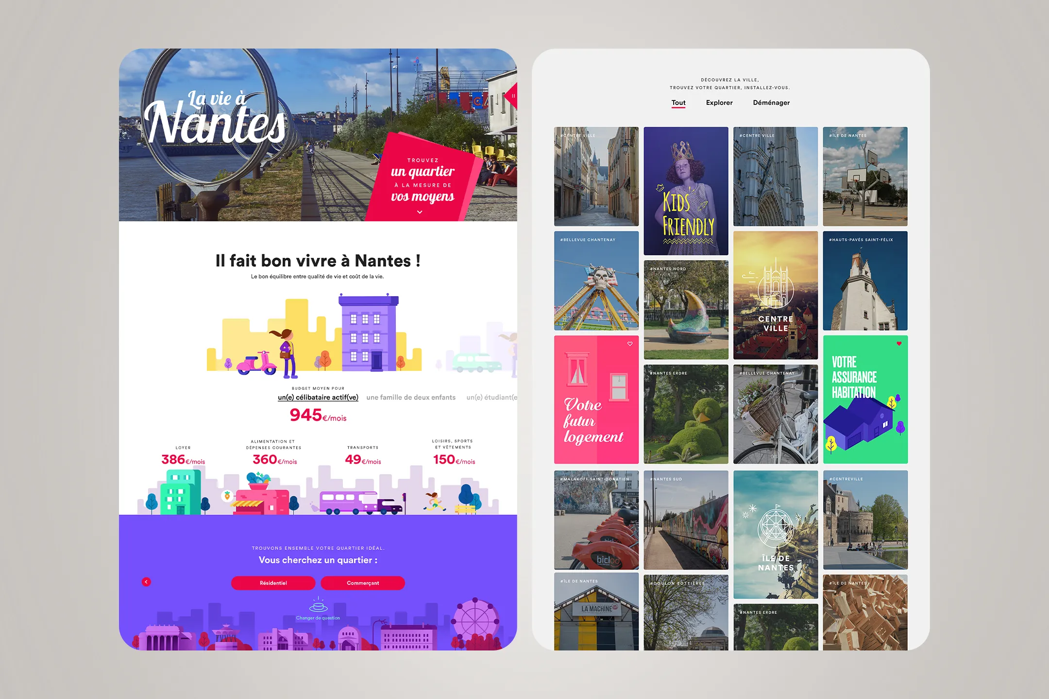 Dans le cadre d'un Studio de Startup interne à La Poste, un site expérimental conçu pour accompagner les personnes souhaitant s'installer à Nantes — de la découverte de la ville jusqu'à l'installation complète. Le projet couvre l'ensemble du parcours : découvrir Nantes et ses quartiers avant d'arriver, choisir son quartier grâce aux données publiques de la ville, puis être connecté aux services essentiels une fois installé — transport, gardiennage, énergie, contrats de service — portés par un écosystème de startups nantaises. Conçu et livré en moins de quatre mois, ce projet illustre une approche créative intégrale — de l'idée à l'exécution — au service d'une vision de La Poste à 10-15 ans.